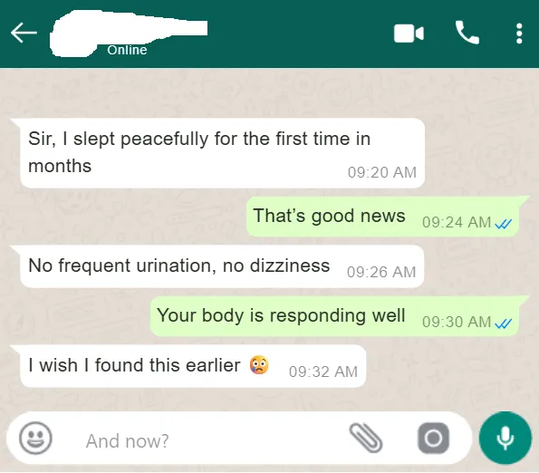 A man in Abuja, 54 years old, struggled to sleep through the night for three years because of nighttime urination. By the end of week two, he slept through the night for the first time. He called us crying.